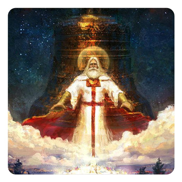 В небесном поселятся боги, в земном – люди, а в подземном – духи мертвых. Там, где творец уронил золотое семечко, произросло Мировое Древо, корни которого в подземном царстве, а крона – в небесном. Под деревом лежит камень Алатырь, на котором написаны законы мироздания, но не все их могут прочесть. В небесном царстве поселились боги, одним из которых был Сварог, созданный собственноручно родом для того, что он помогал ему присматривать за земными делами.